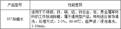 2、除蠟水(shui)系列産品(pin)(共有五種(zhong)型号:107、108、109、110、110B)。