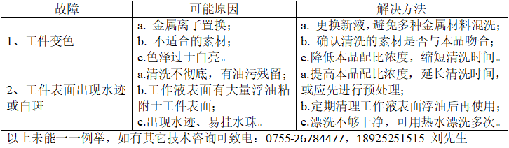 ①視工件表(biao)面油污程(cheng)度及種類(lei),确定工作(zuo)液濃度;