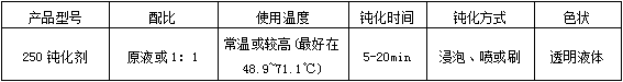 需(xu)鈍化的(de)工件表(biao)面清洗(xi)後→本品(pin)浸泡、噴(pen)或刷處(chu)理→漂洗(xi)2-3次(最好(hao)是流動(dong)的水較(jiao)佳)→熱水(shui)漂洗(減(jian)低水斑(ban))→幹燥(70~90℃左(zuo)右)→接後(hou)工序。